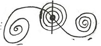 В центре рисунка спираль - символ перемещения в пространстве. Точка в круге - изображение нейтронной звезды Тифон (Медуза Горгона). Треугольники - космические корабли инопланетной цивилизации. Показано изменение траектории нейтронной звезды космическими кораблями пришельцев.